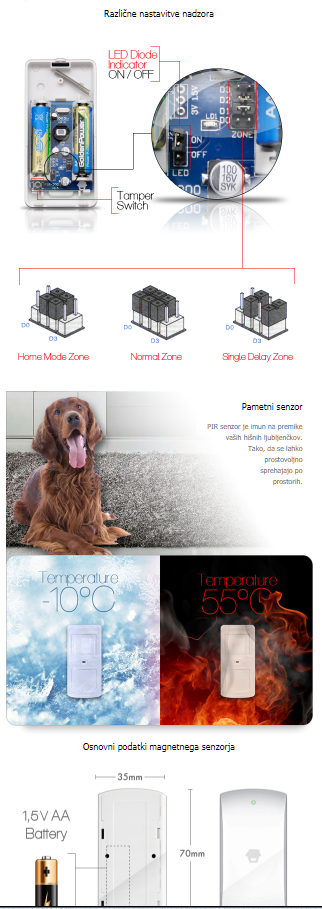 GSM/SMS ALARMNA CENTRALA + RELE IZHOD + RFID ČITALEC KARTIC/KLJUČKOV + PIR SENZOR + MAGNETNI SENZOR + 2 X DALJINSKI UPRAVLJALNIK / MODEL 2017